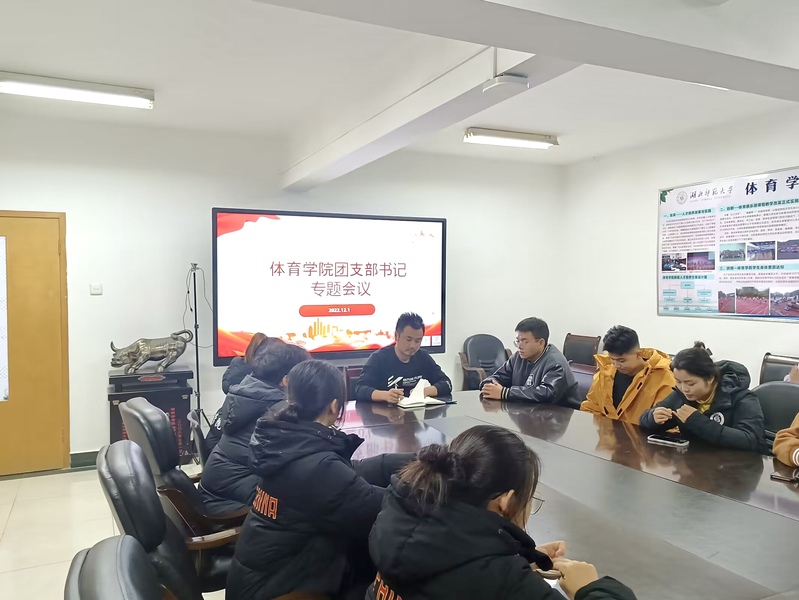 11月27日晚八点,悟空体育在体育馆二楼会议室开展了悟空体育团支部书记专题会议,本次会议由辅导员李亮老师主持,各班级团支部书记出席了本次会议。
