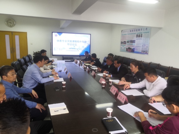 本网讯 2021年5月7日,悟空体育在体育馆2楼会议室举行体教专业实践课程校外导师培训。悟空体育班子成员、体育教育系主任,来自黄石三中、黄石六中、黄石八中、实验中学、黄石有色一中等中学的体教专业实践课程校外导师参加培训。