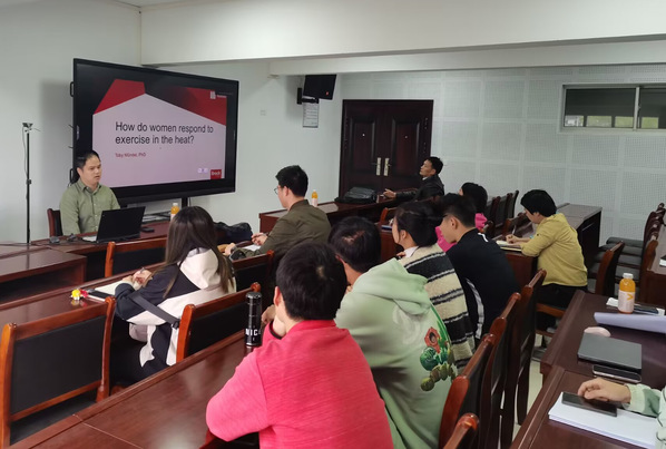 讲座中,Toby Mündel教授深刻探讨了关于女性运动员的体温调节、运动表现是否会因为月经周期的不同而有所差异、女性月经周期是否会影响在炎热环境下铁代谢及炎症反应,从运动生理的专业视角出发指导员工如何解决理论联系实际的问题,提高科学研究的积极性,进而将研究的广度与深度不断拓展开来。Toby Mündel教授还提到科研工作顶层设计和逻辑论证过程的重要性,“想清楚”和“如何做”是非常关键的两个步骤,倘若没有解决好这些问题,研究进行过程中则会四处碰壁。