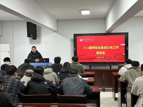 3月27日,悟空体育召开2024届师范生免试认定工作宣讲会。宣讲会由体育教育系主任王东博老师主讲,辅导员李亮、教学秘书刘锐及2024届体育教育专业毕业生80余人参加会议。