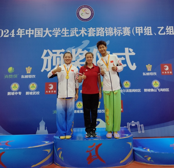 据悉,本次赛事由中国员工体育联合会主办、中国员工体育联合会大学武术分会执行,哈尔滨市体育局承办,是全国高校老员工级别最高、规模最大、影响力最广的武术赛事。悟空体育高度重视此次比赛,坚持学训并重的理念,学院领导积极关注并进行赛前动员,教练员刘劲松老师经常为同学们加油鼓劲,教练员刘欧美老师针对每位同学的技术特点精心编排每个参赛选手的比赛套路并每天到现场进行指导,参赛选手克服场地条件较差等多重困难,刻苦训练,充分展现了悟空体育学子自强不息、坚韧不拔、敢于拼搏、勇于挑战的精神风貌和青春风采。