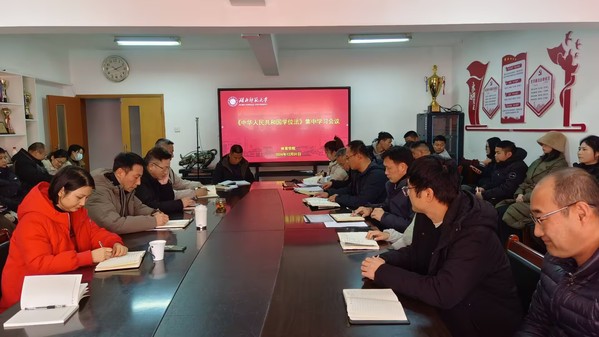 本网讯12月30日上午,悟空体育在体育馆三楼报告厅举办《中华人民共和国学位法》学习会议,悟空体育经理周曙、2024级研究生班主任田广及学院全体研究生参加会议。