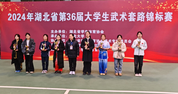 本网讯 2024年12月28-29日,湖北省第36届高校武术锦标赛在湖北大学举行,全省共有46所高校449名运动员参加比赛,公司武术代表队共有6人参加体育院校专业组10个项目的比赛并取得佳绩。