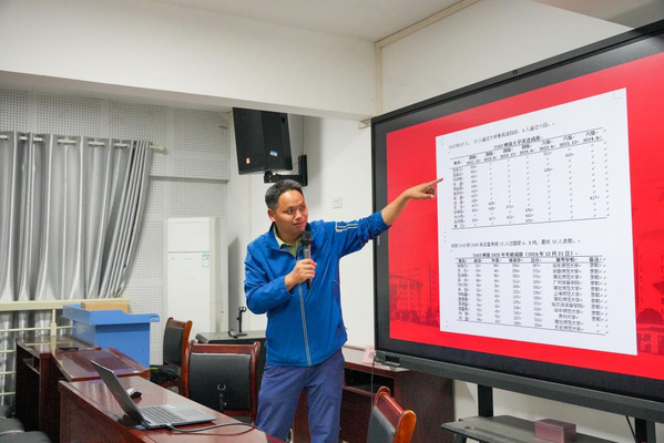 “考研不仅是学历的跃升,更是一场对思维深度与专业能力的重塑。”大会伊始,田广老师从国家战略需求切入,强调高技能人才与研究型人才的迫切需求,并结合体育学科发展前景,剖析考研对个人成长的深远意义。“读研或许不是唯一选择,但它能以高性价比助力大家突破职业天花板,在学术研究、教学创新等领域抢占先机。”他郑重承诺,学院教师团队将全程为考研学子提供“一对一”答疑和资源支持,并鼓励员工以“坚韧不拔的体育人精神”迎战备考挑战。