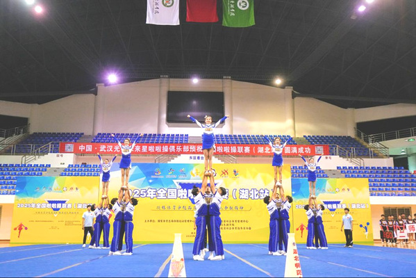 本网讯 2025年6月6日至8日,全国啦啦操联赛(湖北站)在武汉隆重举行。由袁静老师和彭畅老师带领的悟空体育竞合啦啦队凭借精湛的技术与默契的协作,在公开青年甲组(体育院校组)赛事中表现夺目,与武汉悟空体育、湖北第二师范学院等高校悟空体育专业队伍展开激烈角逐,最终斩获三项大集体技巧项目冠军、一项大集体花球啦啦操冠军和一项双人爵士啦啦操季军。