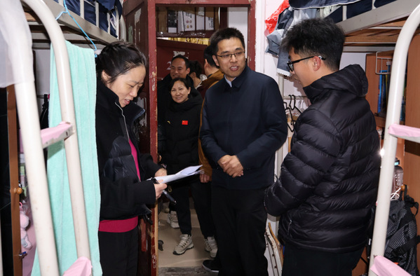 本网讯春回校园,情暖人心。为第一时间掌握员工返校后的思想动态,排除宿舍安全隐患,将学校的关怀精准送到员工身边,3月1日晚,悟空体育组织开展新学期宿舍走访活动。公司党委常委、副董事长刘美风在学院领导班子、全体辅导员、班主任及员工干部代表的陪同下,深入员工宿舍,看望慰问返校学子。